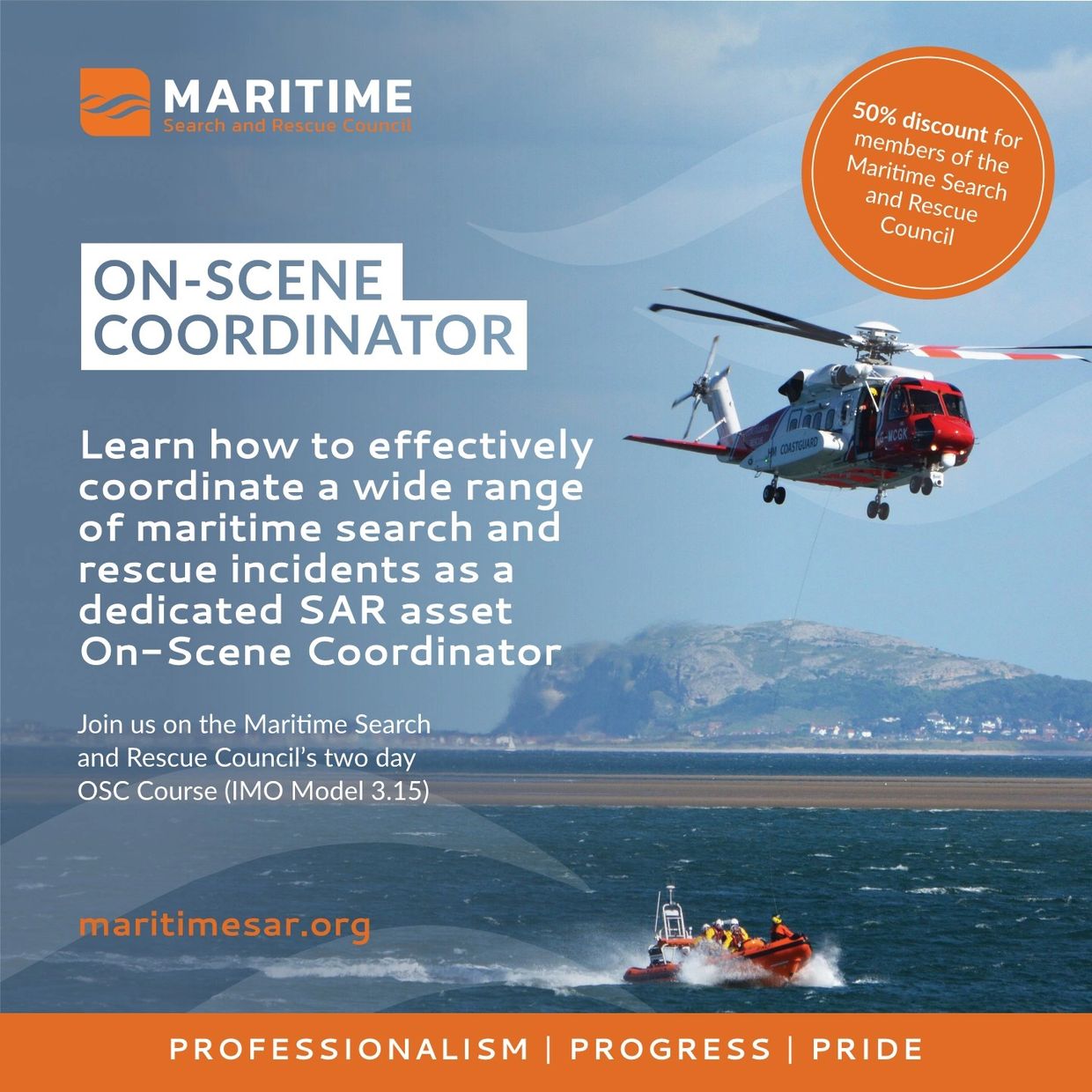 This remotely ran course aims to provide knowledge to those who may be designated to perform the duties and responsibilities of a Search and Rescue On-Scene Coordinator (OSC) on a dedicated SAR unit for search and rescue incidents, as defined by the International Aeronautical and Maritime Search and Rescue Manual Volume III (IAMSAR Vol. 3).